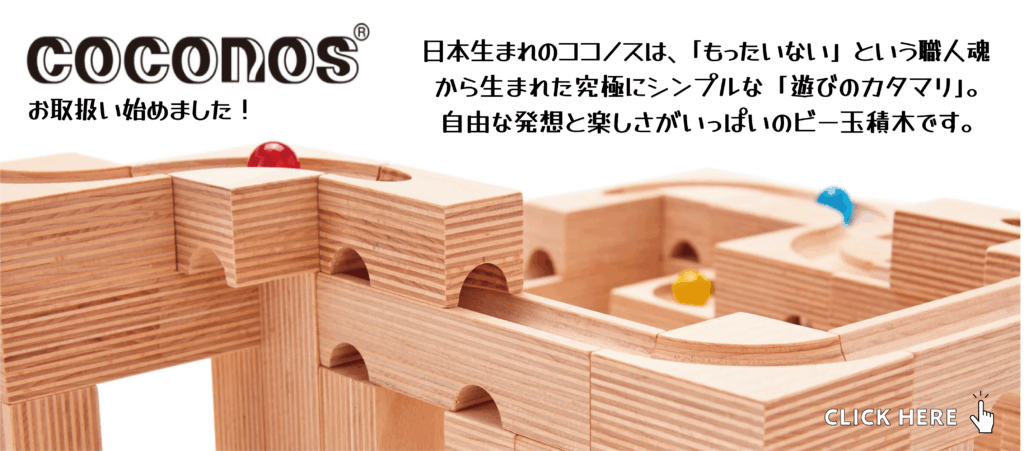 娘さんが積木とビー玉を一緒に遊ぶ姿を見て、工場の「穴あけ技術」と大学で学んだ「幼児教育」の知識を融合させて「説明書がなくても直感的に遊べる」積木遊びを開発しました。娘さんと遊びながら「(次はどこに)ここ乗す!」という関西弁のやり取りからcoconos(ココノス)は生まれました。